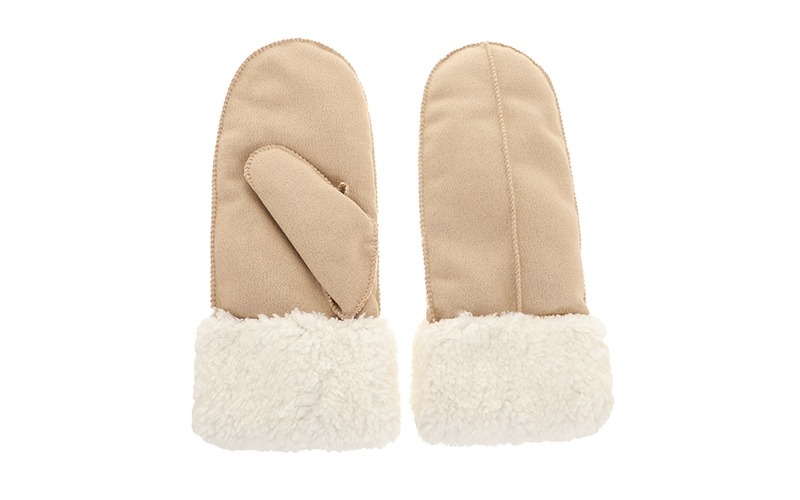 Extra’s: Klassiek wantenmodel, omgeslagen boord van teddy-stof.